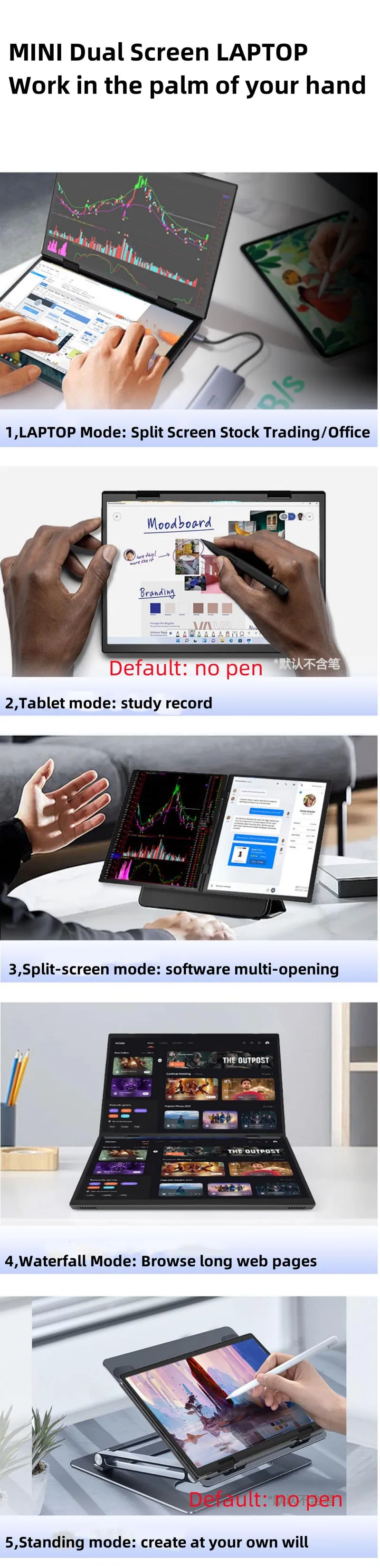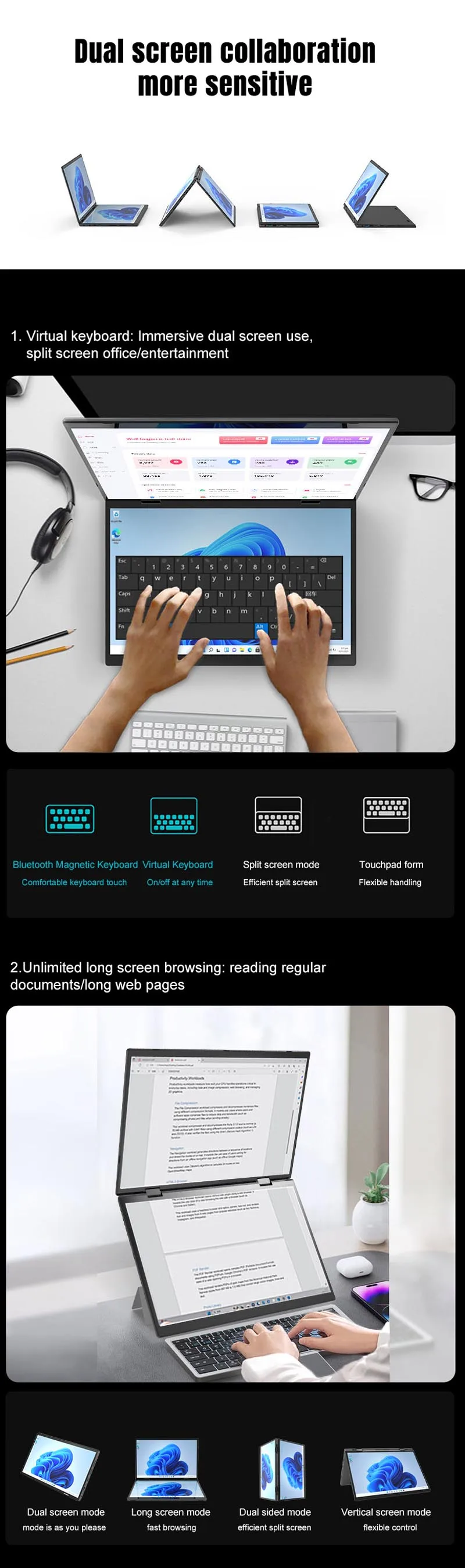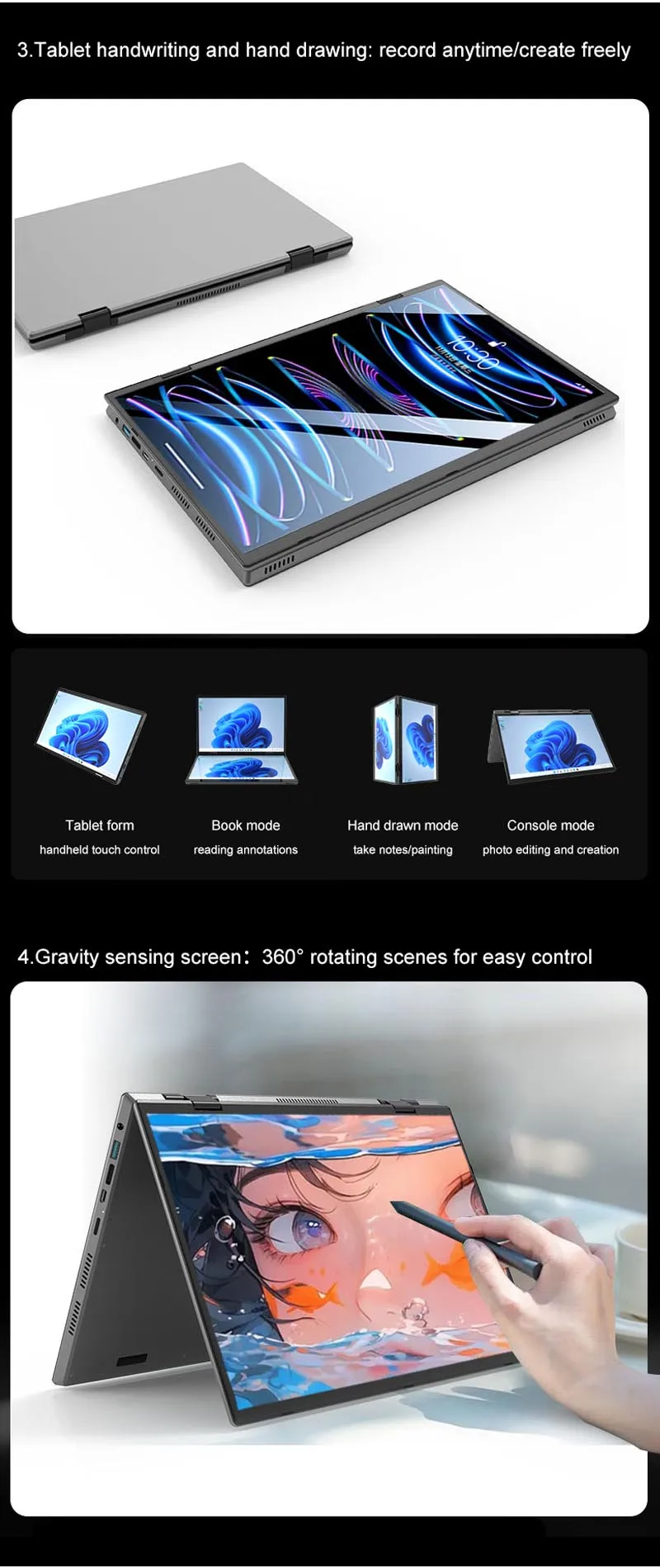 Dual 10.5-inch screen, dual touch control, dual handwriting; screen support 360 ° flip (with gravity sensing), unlimited play;